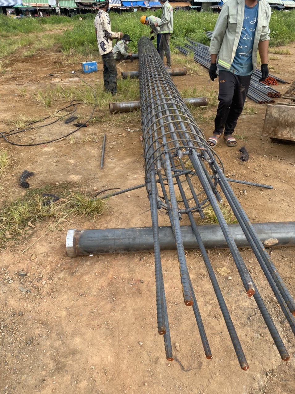 • Tiếp theo thực hiện công tác cốt thép, xử lý cặn lắng đáy lỗ khô, kiểm tra xem lỗ khoan đã ổn chưa rồi tiến hành đổ bê tông vào.